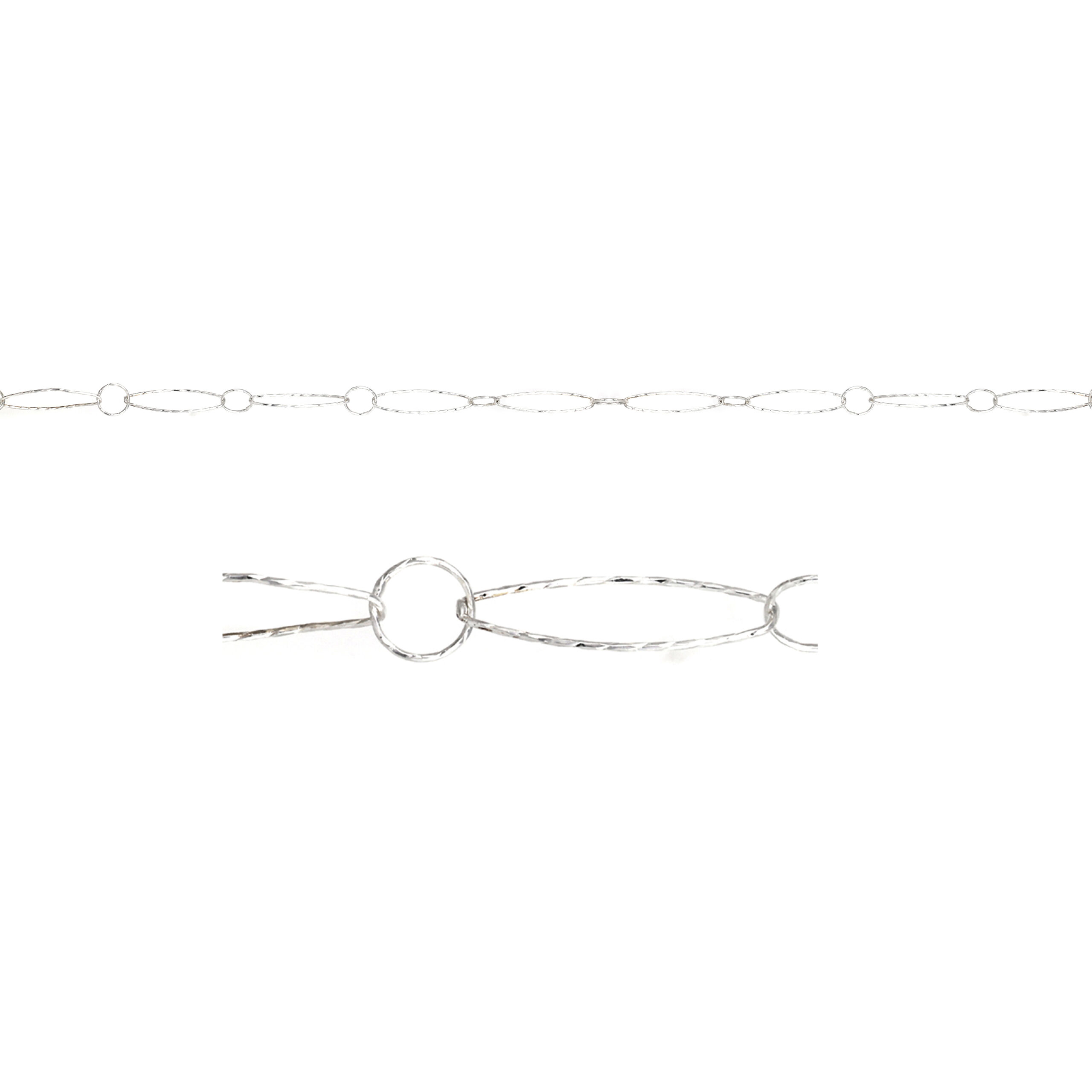 Sterling Silver Chain Dia. Cut Oval w/ Round Link 6.75×23.5mm