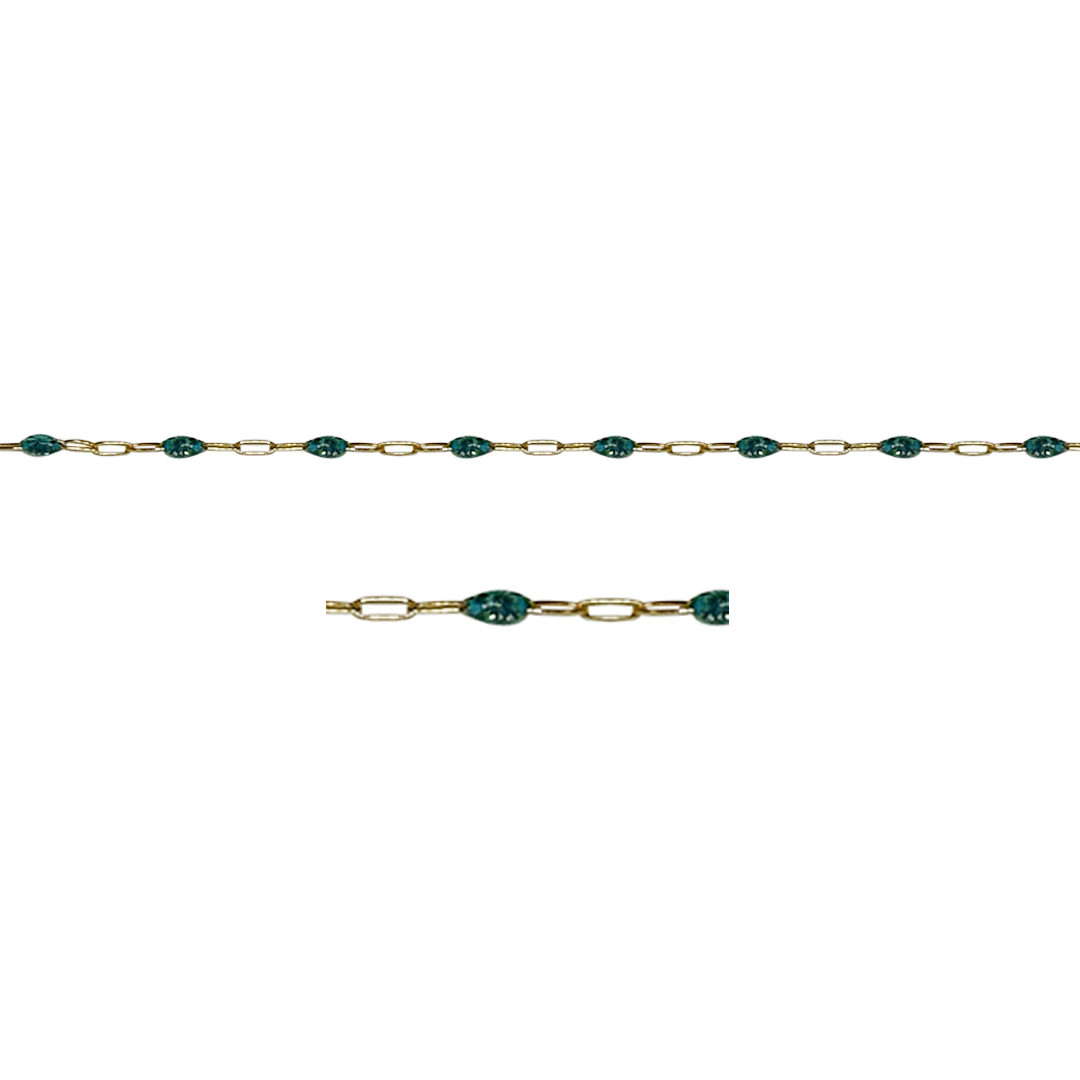 Sterling Silver Gold Plated Paper Clip Chain 0.75 mm With Sea Green Enamel Bead