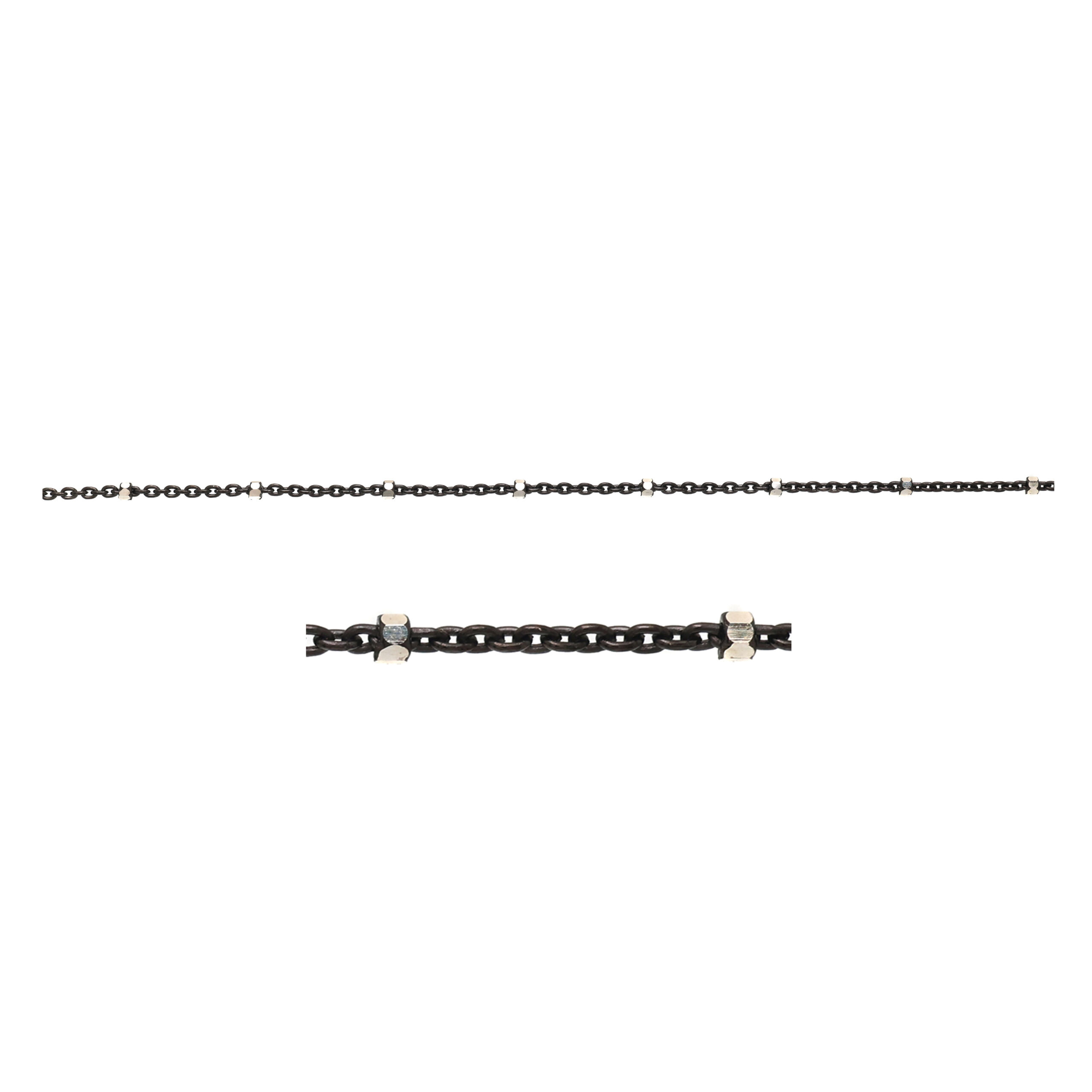 Sterling Silver Rolo Chain : Black Rolo Chain with Silver Square Beads at 10 mm Gap